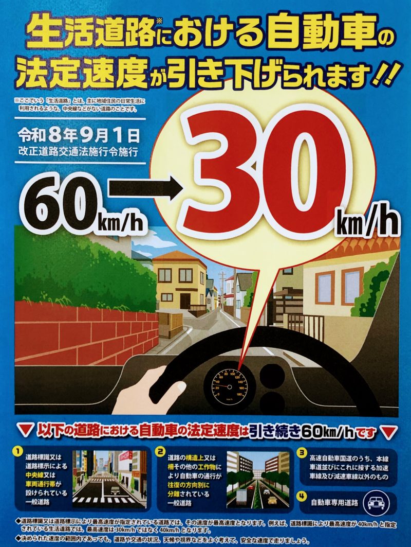 改正道路交通法施行令の施行により、いわゆる「生活道路」においては