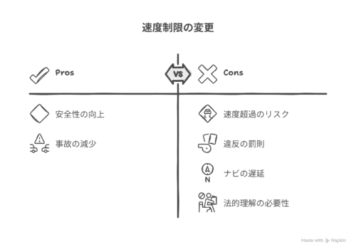 - 道路の種類によっては制限速度が分かりにくく、混乱を招く可能性。