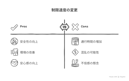 速度制限が広がることで、配送業務や通勤ルートに時間がかかる可能性があります。